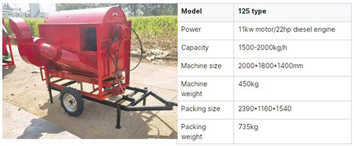 This machine is mainly used for threshing crops such as wheat, rice, millet, sorghum, rapeseed, quinoa, cumin, atractylodes, soybean, broad bean, bitter bean, etc. The machine adopts axial flow drum threshing and adjustable air volume cleaning technology to clean and separate grains, bran and straw.